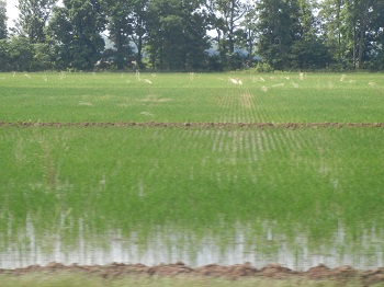| Ein Kraftwerk und dann riesige Reisfelder, denn Wasser |