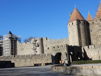 | Wieder schmale Straßen und laute Stellplätze, hier Sauve |