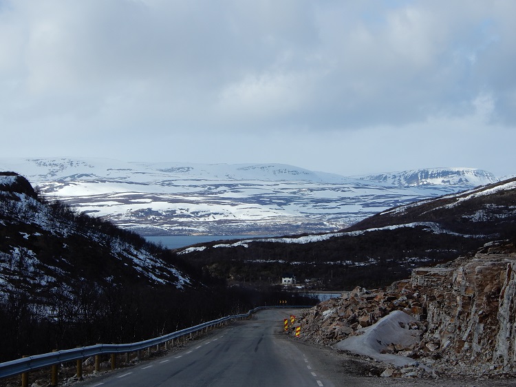 | Vor uns liegt der Fjord von Narvik, wir biegen aber vor der Stadt ab in den Rombacksbotn |