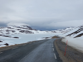 | Es wird wieder gewunken, zumindest auf einsamen Strecken. Die Campingplätze und allgemeine Touristenangebote öffnen erst Mitte Juni und mittlerweile stehen in fast allen Vorgärten Wohnmobile. Die Norweger haben ordentlich aufgerüstet. Der Sprit ist günstiger als erwartet (ca. 14.10 NOK) aber die Lebenshaltungskosten sind enorm. Für eine Dosenmilch hab ich 41.- NOK bezahlt - entspricht mehr als 4.- € |
