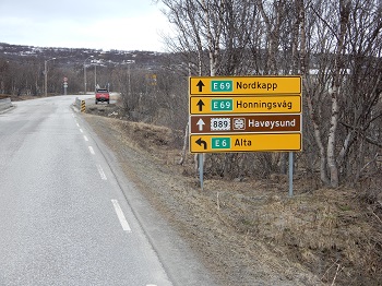 | Die Größe Skandinaviens ist erst mit solchen Wegweisern zu erfassen |