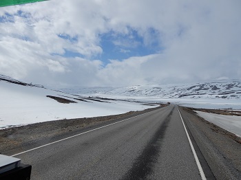 | Wir kommen wieder runter zur E6 und sind damit wenigstens unterhalb der Schneegrenze |