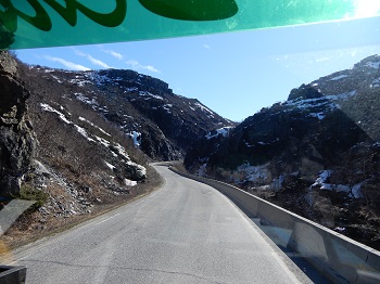 | Eine Umleitung holt uns aber danach gleich wieder in die Berge. Schön, aber kalt! |