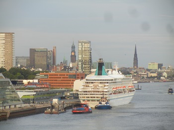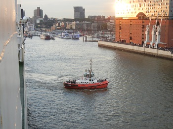 | Blick auf einen Kreuzfahrer und im Hintergrund der Michl. Rettungsübung ist angesagt! |