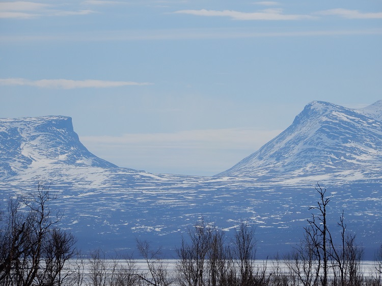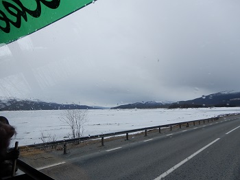 | Der Torneträsk, ein riesiger See ist großteils noch zugefroren |
