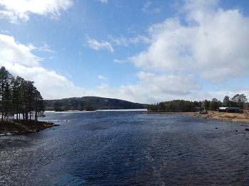 | Es geht entlang an aufgestauten Flußläufen, die meist noch zugefroren sind |