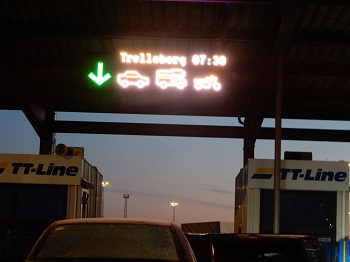 | Im Hafen bekommen wir gleich Fährtickets und stehen innerhalb einer halben Stunde im Terminal nach Frederikshavn in Dänemark |