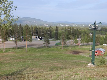 | In Älvsbyn entdecken wir einen Hinweis >SCHILIFT< und ein Stellplatz ist gesichert. |