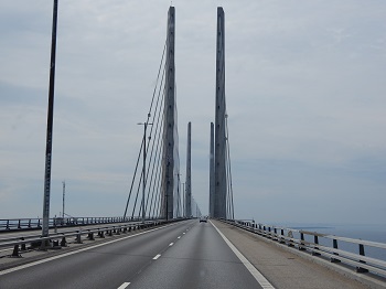 | Und hier ist die Öresundbrücke - kostet für uns 129.-€. Man wird schon lange vorher per Kameras gescannt und bezahlt dann per Karte - kein Mensch da! |