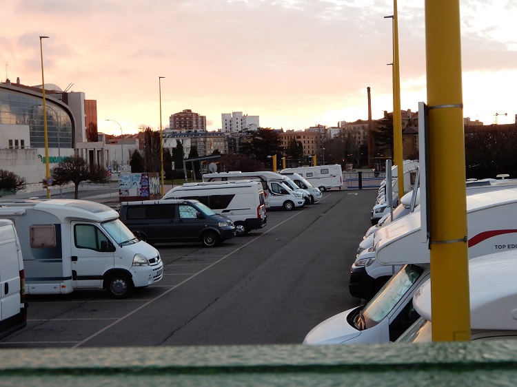 | Es wird schnell dunkel und den Platz in Braganca gibt es auch nicht mehr und so retten wir uns des nachts auf einen Firmenparkplatz. Hell erleuchtet, gut bewacht und ungestört! |