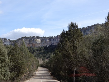 Schlucht zwischen Kastilien-La Mancha und Andalusien. Unten zwängen sich Fluß, Eisenbahn und zwei Straßen durch |