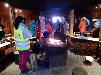 | Dafür gibt es an Oberdeck Rentiersuppe! Johann und Birgitta sind auch da! |