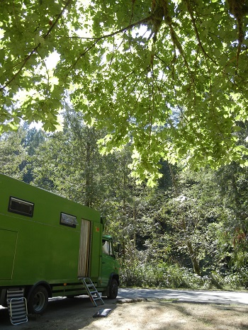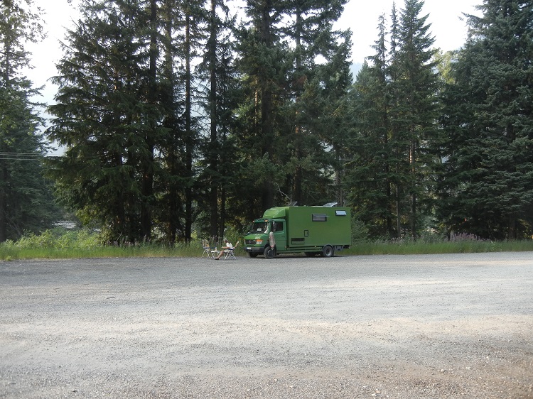 | Und dann noch eine Zugabe, hier darf man gratis 7 Tage im Jahr stehen (bei Pumas und Bären etc.) und glücklicherweise kamen noch zwei andere Camper und uns ist kein Ast draufgefallen:-) | ||