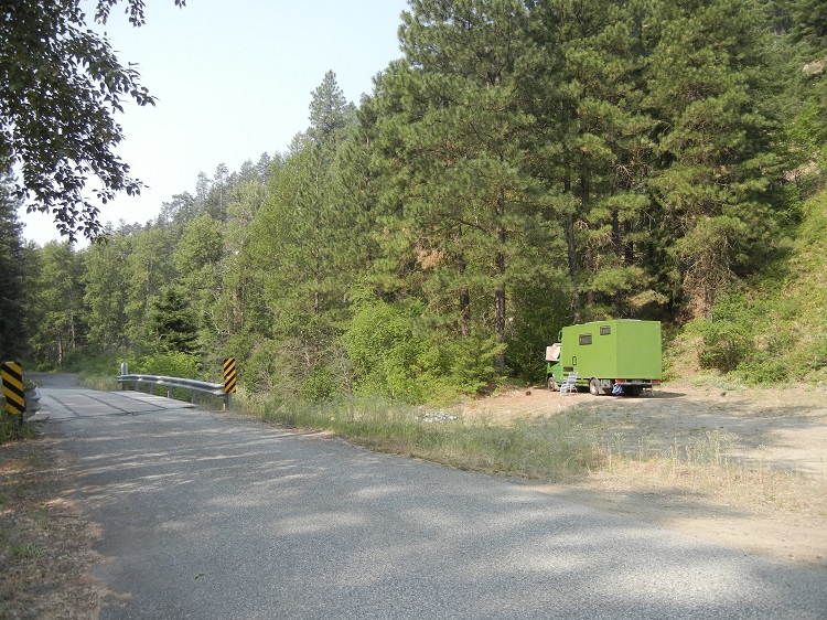 | Lieber wieder in die Berge, da finden wir einen Platz an der Brücke auf der alten Straße zum Old Blewett Pass | ||