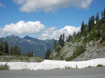 | Es geht hoch zum Mt. Baker und es liegt tatsächlich noch Schnee | ||